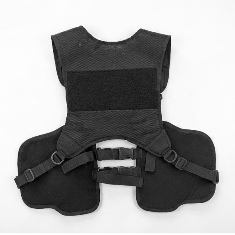 A bespoke harness based off of a tried and tested platform and adapted to suit the customer brief, making the base panels larger to accomodate more pouches and adding dedicated MOLLE webbing on both sides.