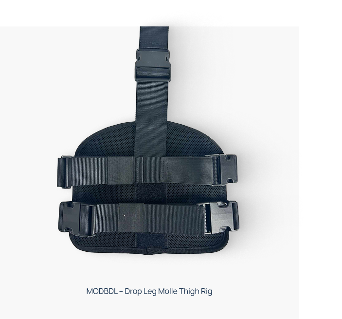 A bespoke 5-round MOLLE baton pouch and drop-leg thigh rig, providing rapid access and compatibility with existing equipment.